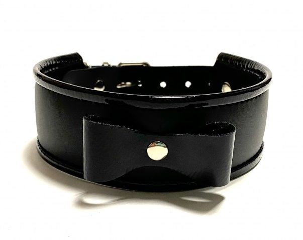 Минималистичный черный ошейник, выполненный из искусственной кожи. Аксессуар декорирован бантиком спереди и металлическим полукольцом, к которому можно пристегнуть поводок. Основная часть выполнена из матовой эко-кожи, а бант и вставки по краю - из лаковой, что придаёт ошейнику изящества. Этот ошейник может отлично дополнить образ и стать волнующим элементом любовной игры. Экономичный, экологичный и симпатичный аксессуар! Ширина - 4,5 см.