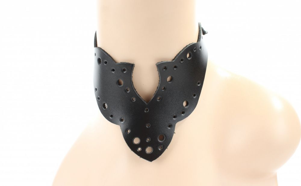Чокер выполнен из натуральный гладкой кожи. Аксессуар фиксируется шнурком сзади, размер универсальный.Резной узор и оригинальная перфорация прекрасно подчеркнет вашу индивидуальность и станет очень изысканным дополнением к образу.