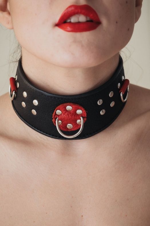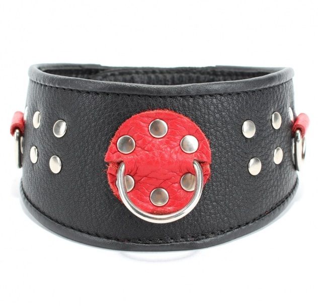 Кожаный ошейник с клепками и кольцами.