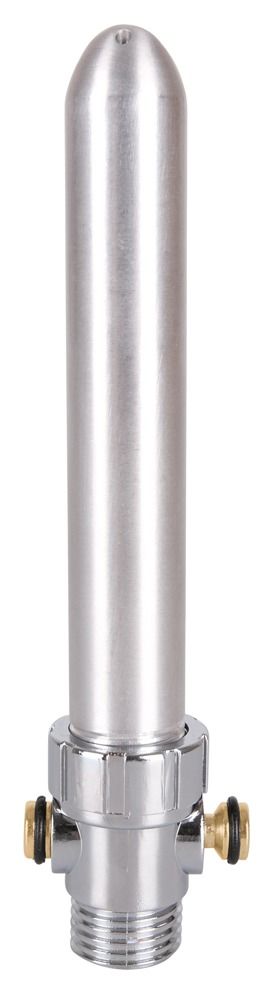 Анальный душ серебристого цвета с 5 отверстиями для струи и стандартной резьбой для душевого шланга с запорным клапаном, который обеспечивает возможность выключения и повторного включения воды по желанию без изменения температуры и давления воды. Кроме того, воздух не всасывается. Рабочая длина - 11,5 см.